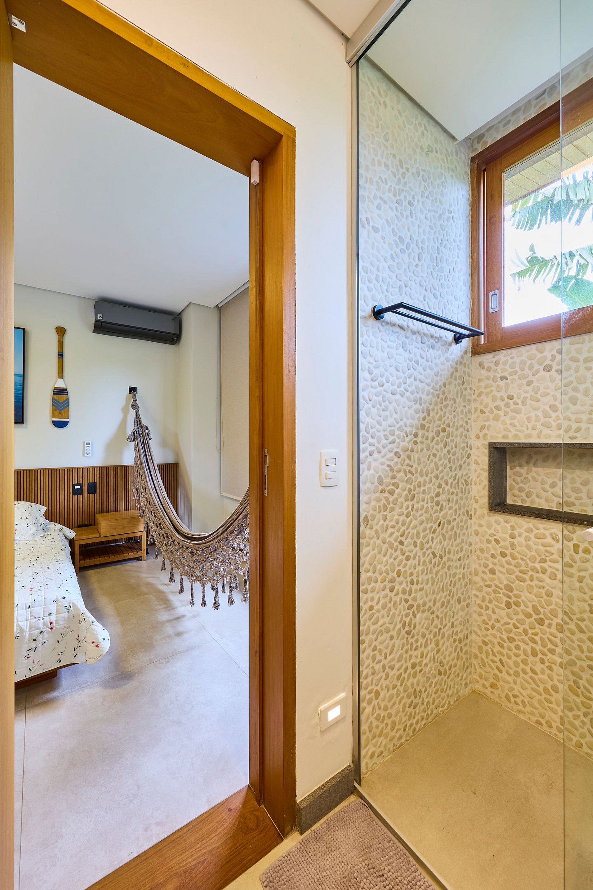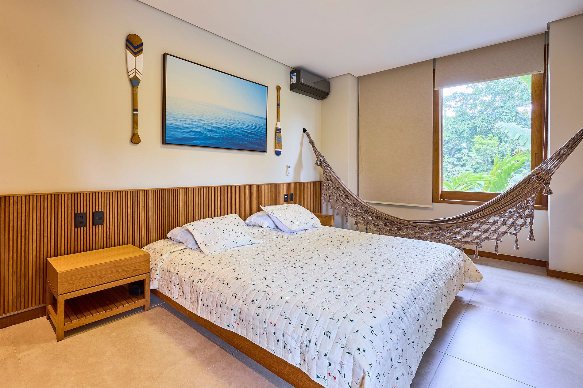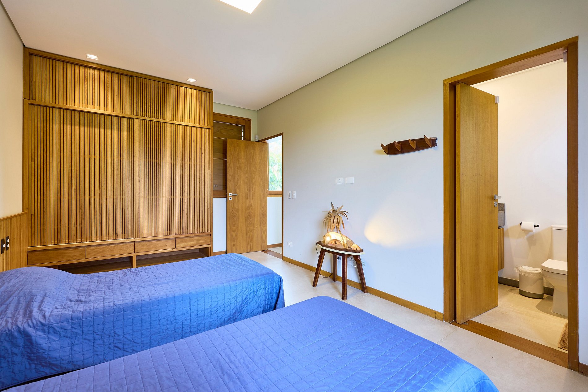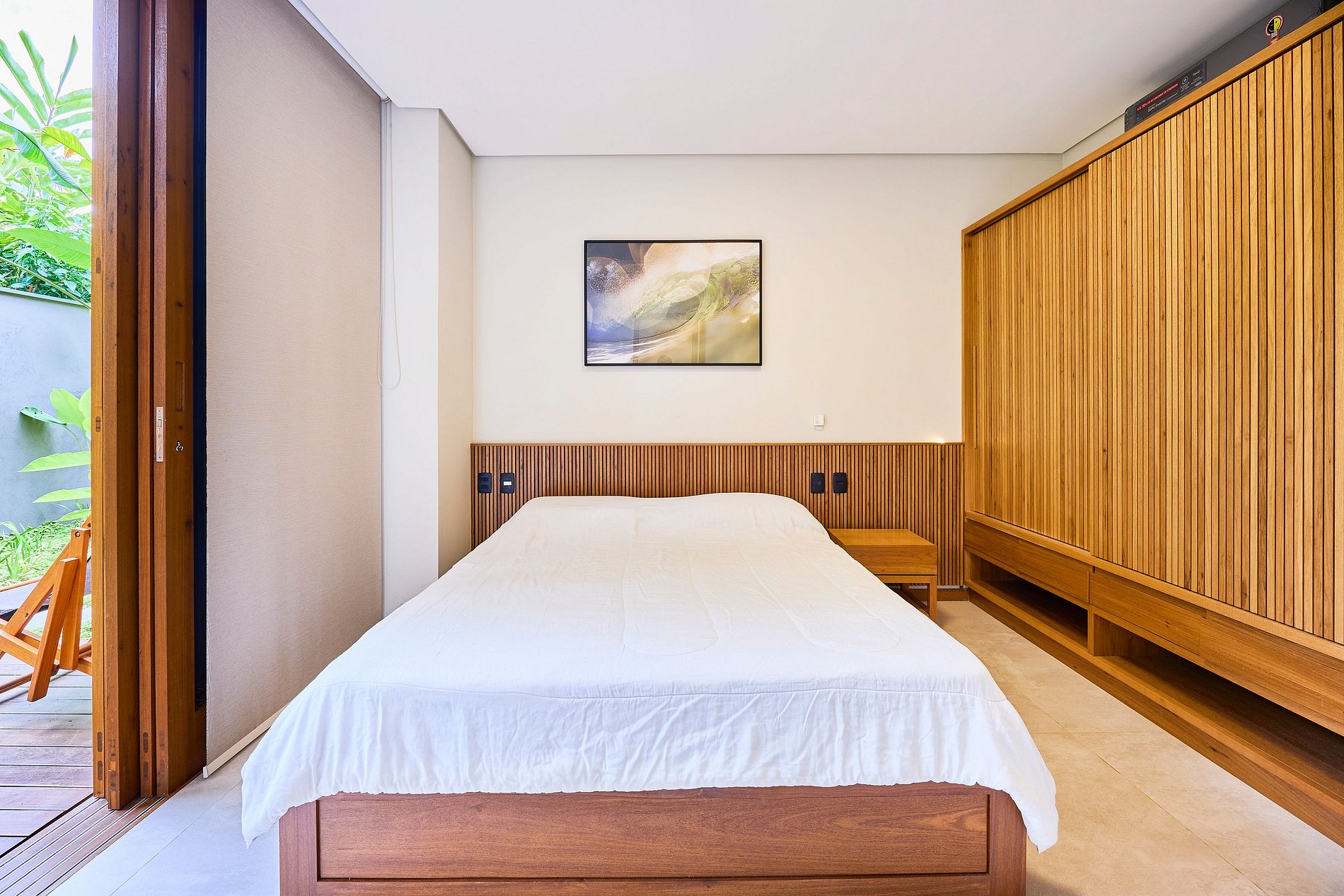 • Suíte 4: Cama Queen + 1 cama auxiliar, ar-condicionado (acomoda 3 pessoas).