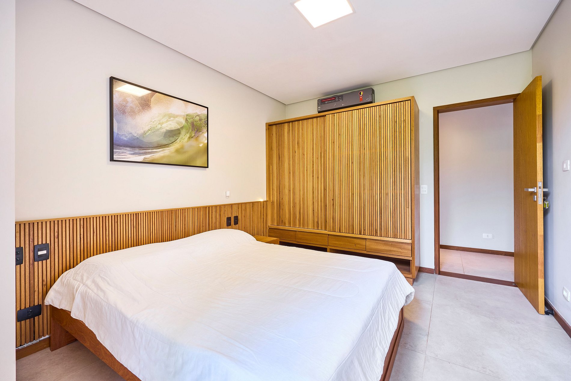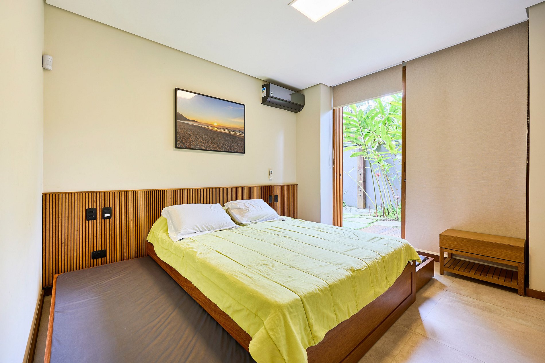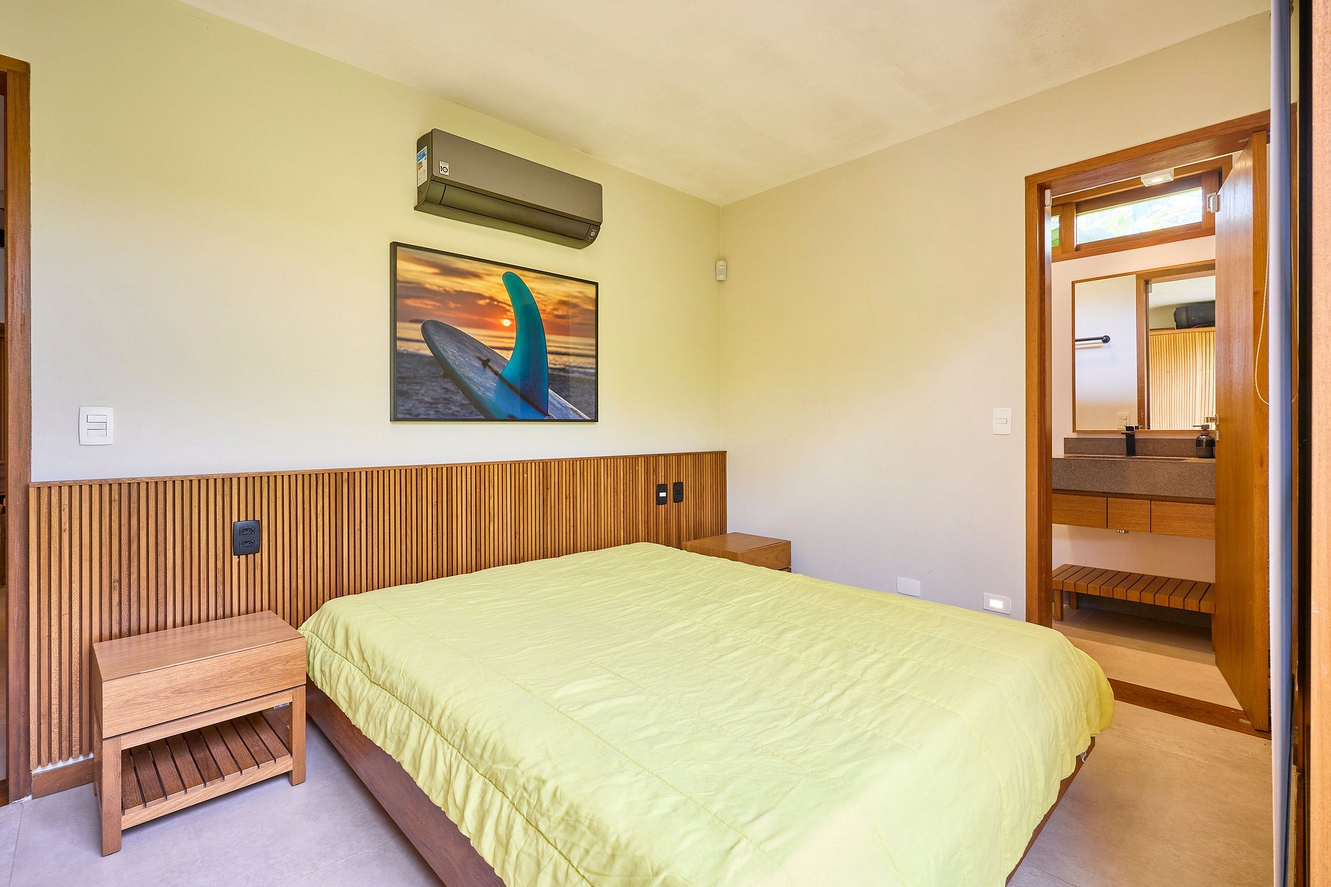 • Suíte 1: Cama Super King, ar-condicionado (acomoda 2 pessoas).