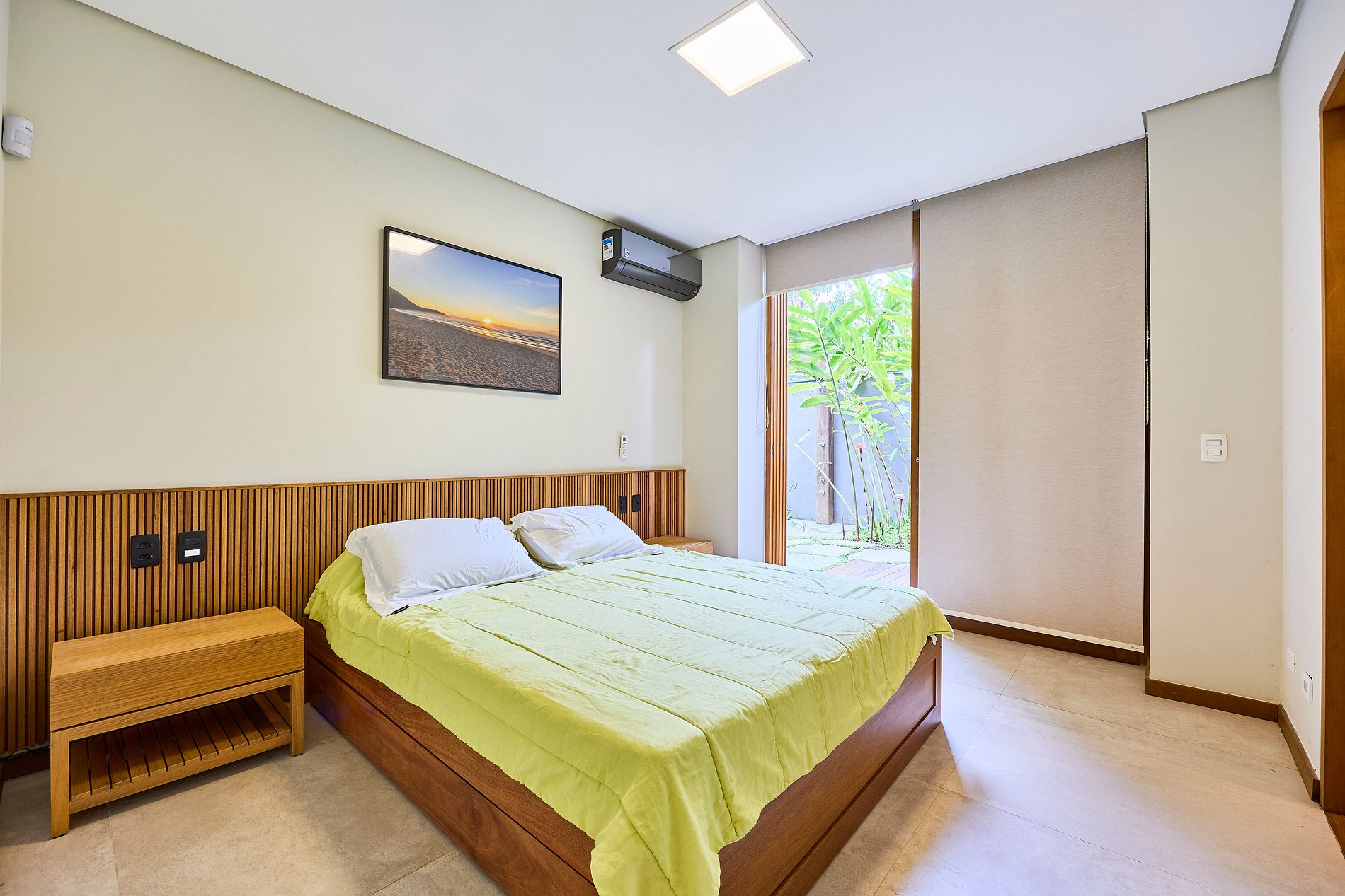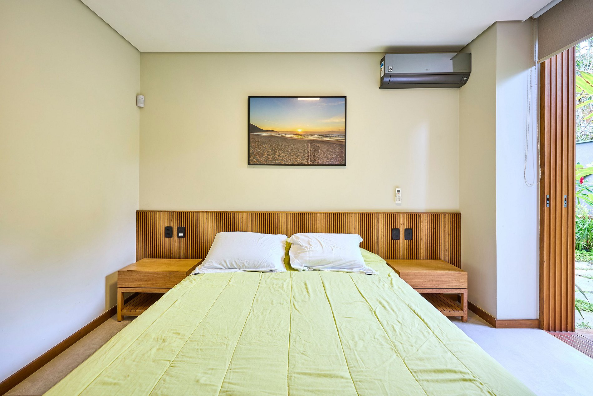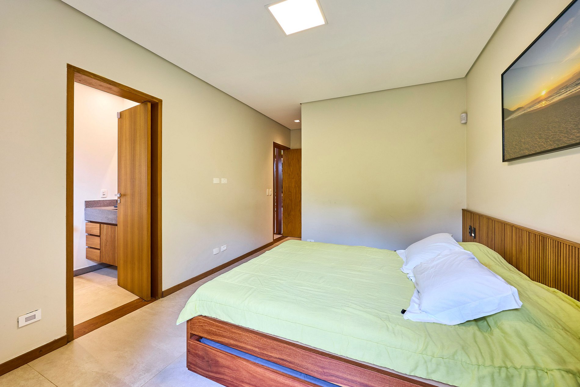 • Suíte 1: Cama Super King, ar-condicionado (acomoda 2 pessoas).