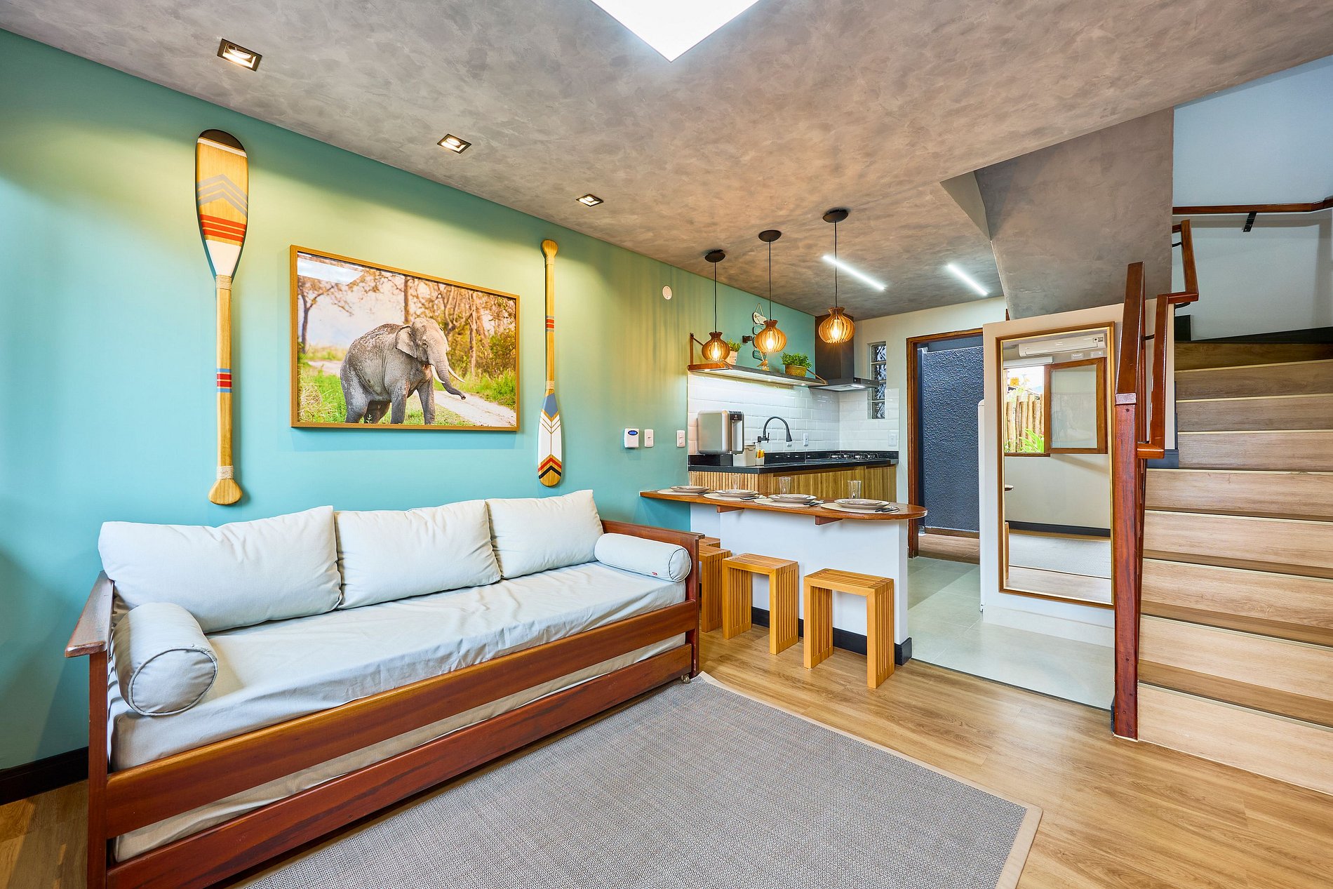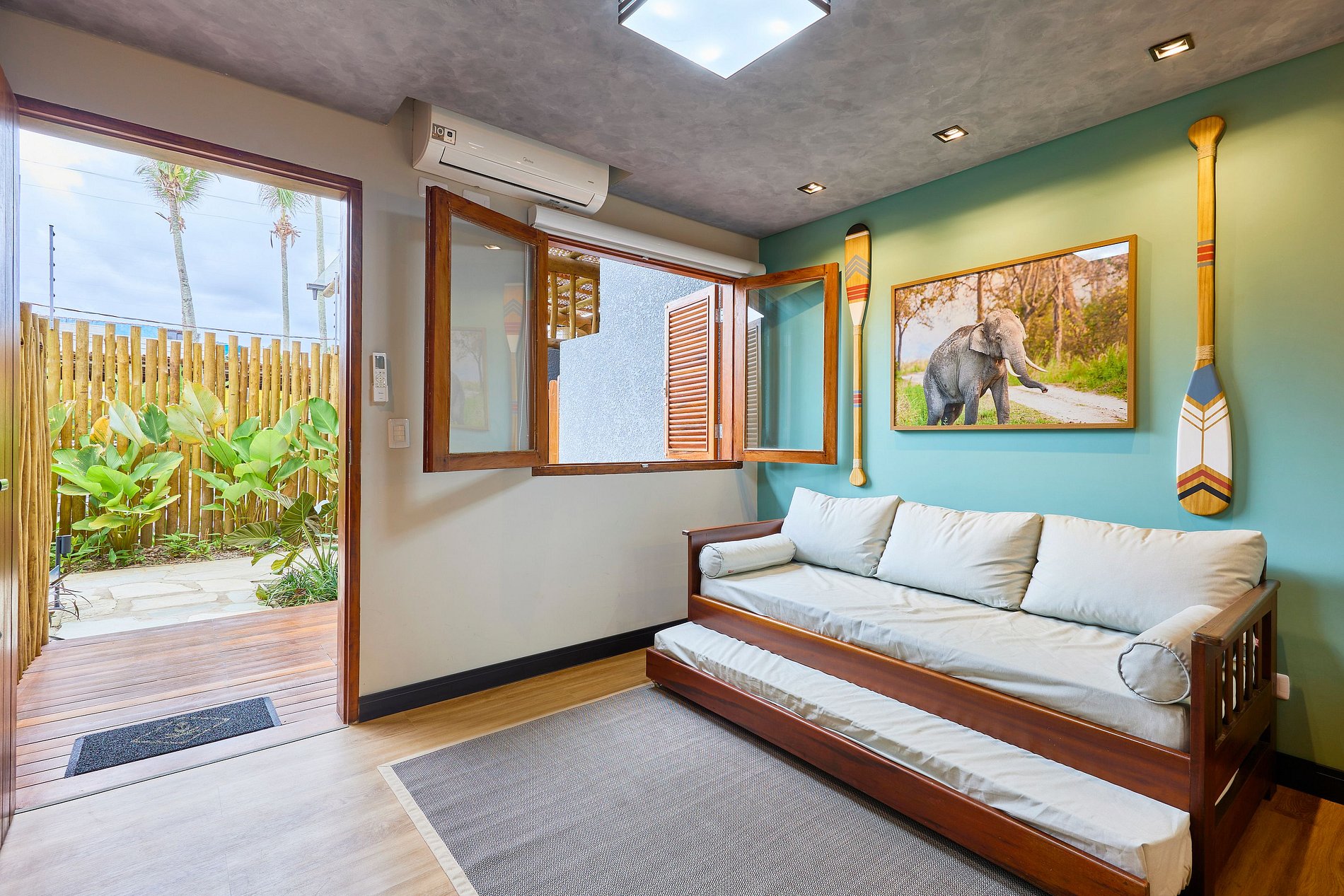 Sala de Estar : com ar e Sofá cama solteito + cama auxiliar ( acomoda 2 pessoas)