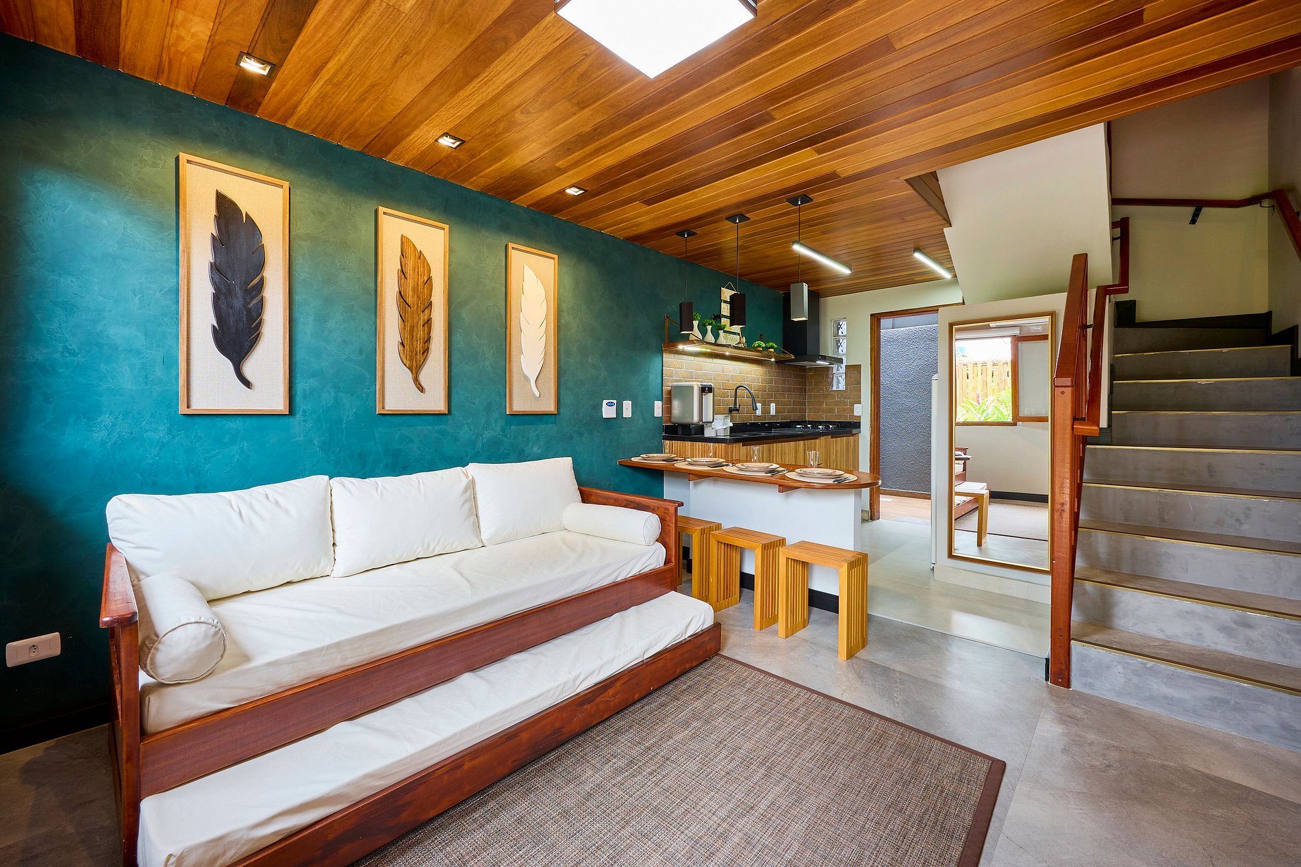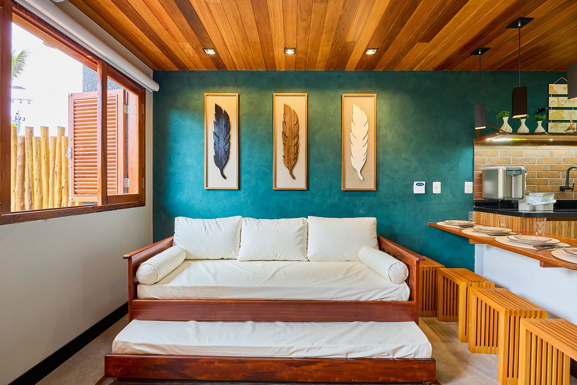 Sala de Estar : com ar e Sofá cama solteito + cama auxiliar ( acomoda 2 pessoas)