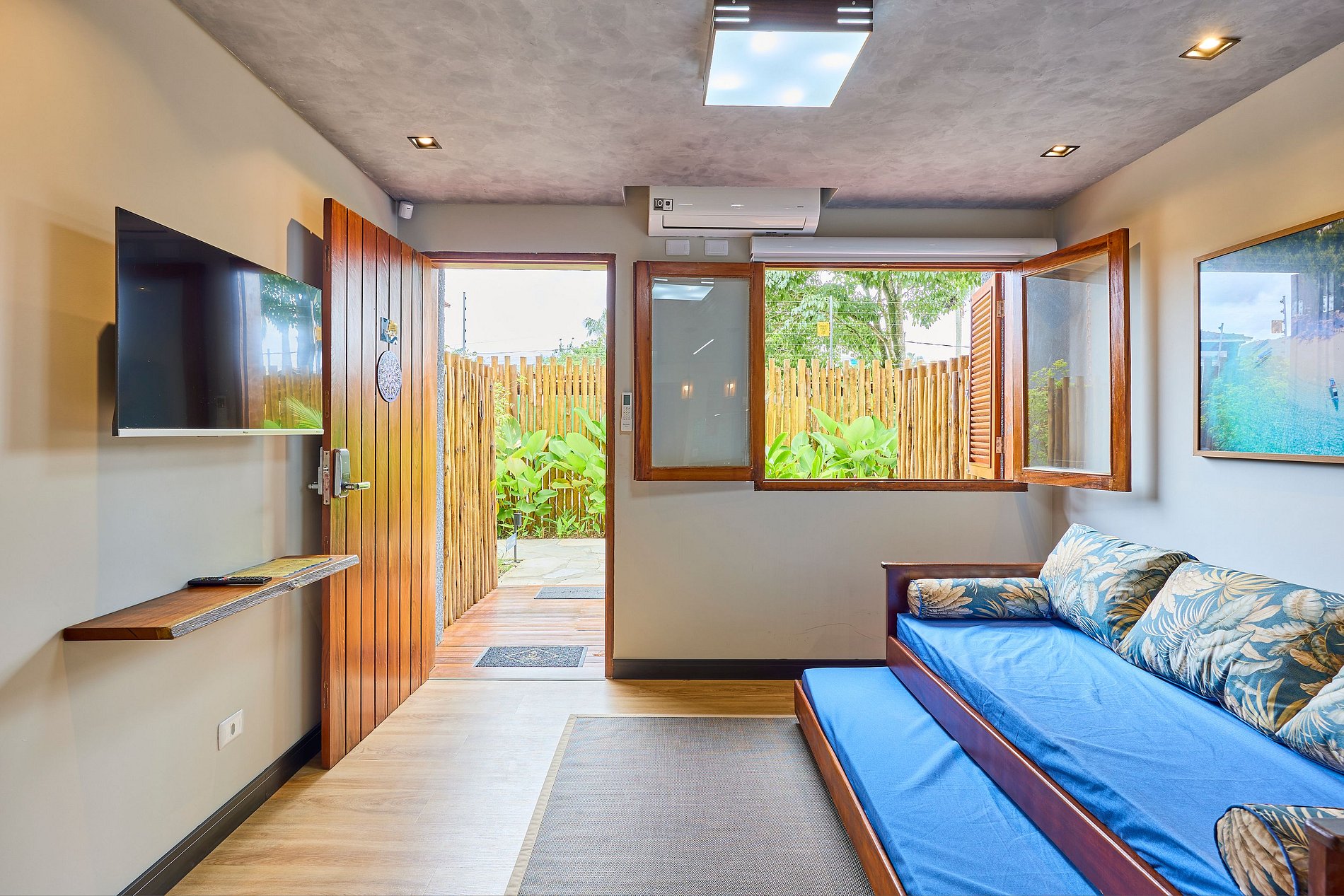 Sala de Estar : com ar e Sofá cama solteito + cama auxiliar ( acomoda 2 pessoas)