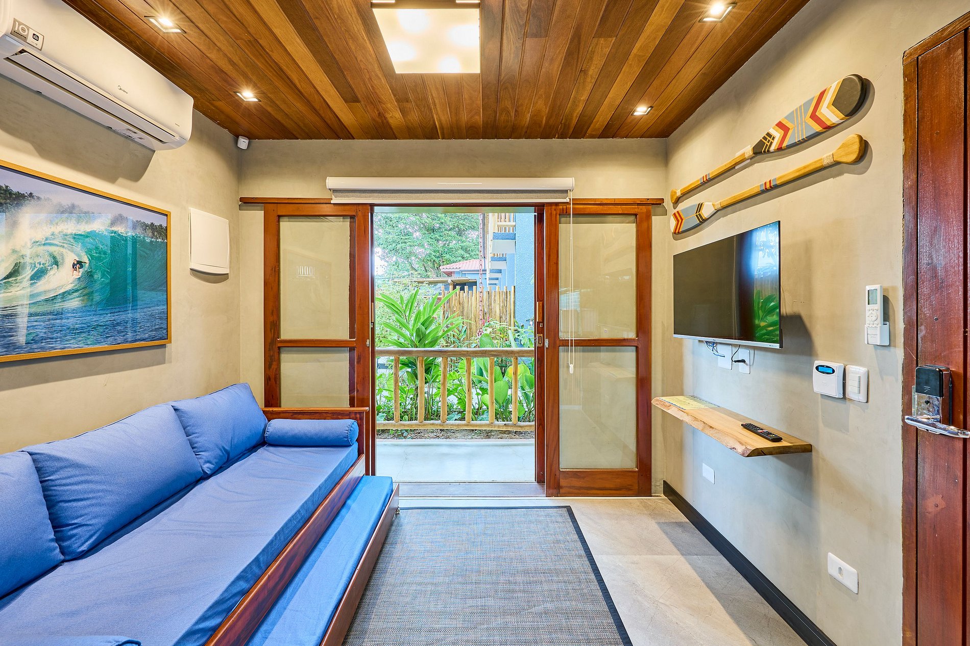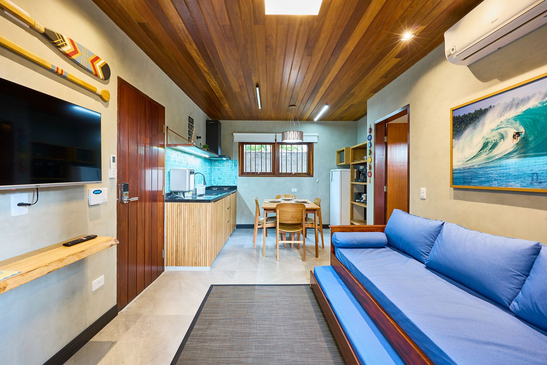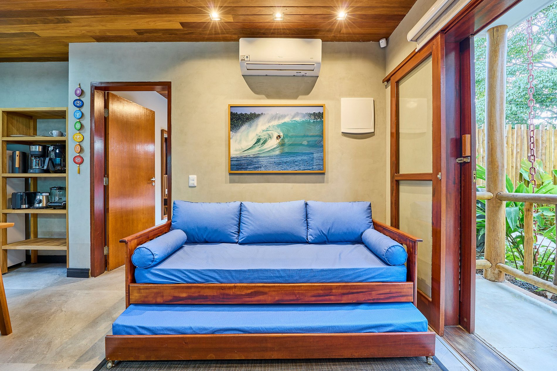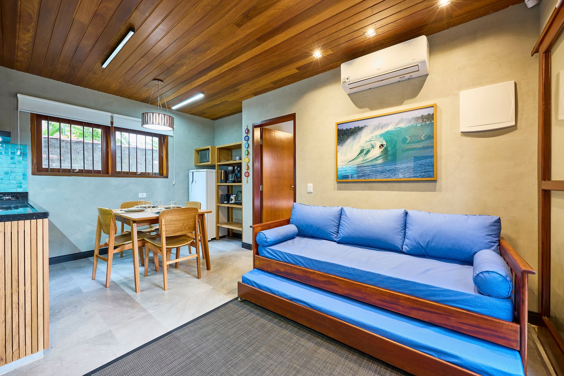 Sala de Estar : ar +bi-cama +TV smart (com acesso Youtube, Netflix, Spotify...) Wi-FI. ( acomoda 2 pessoas)