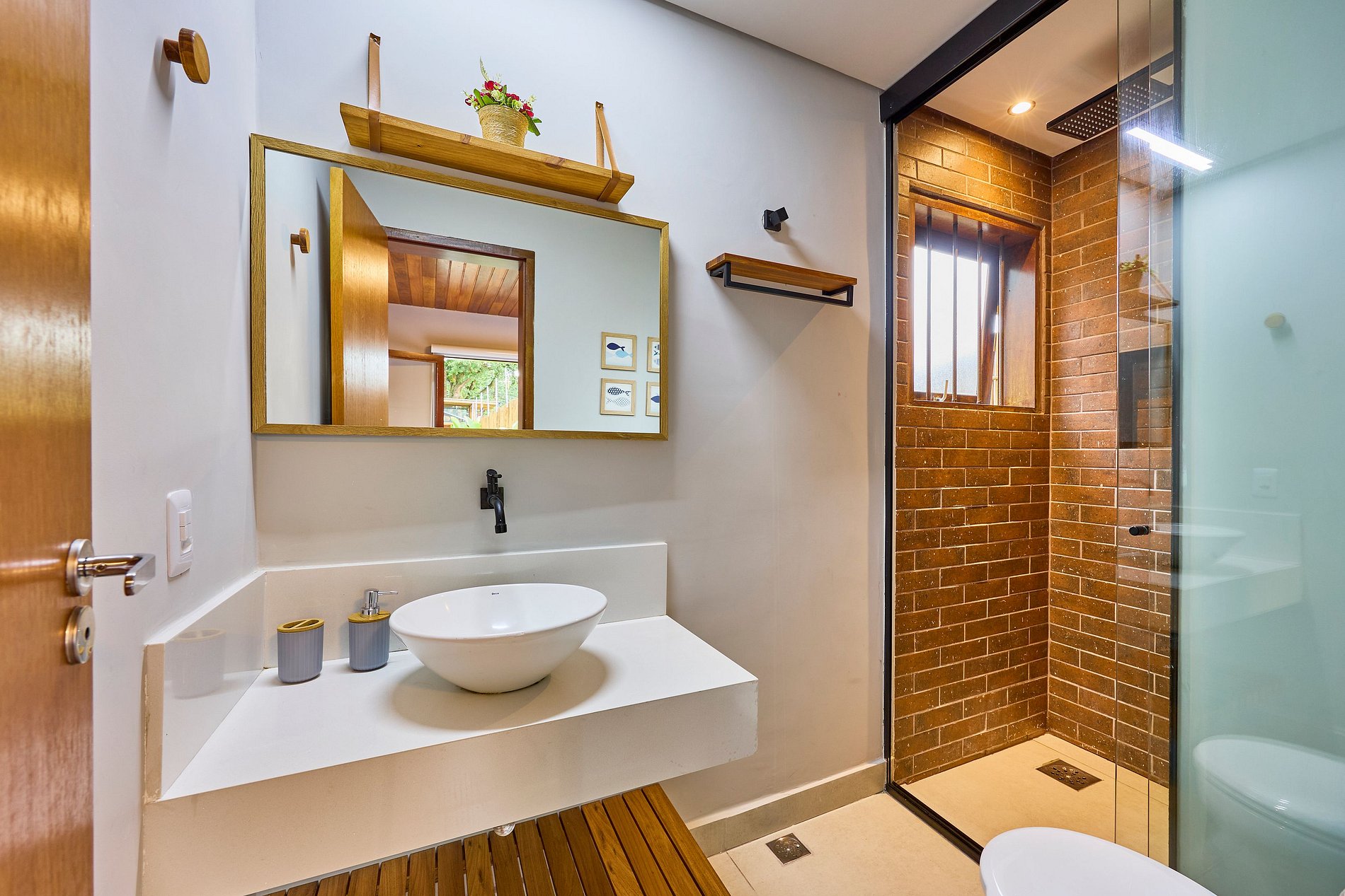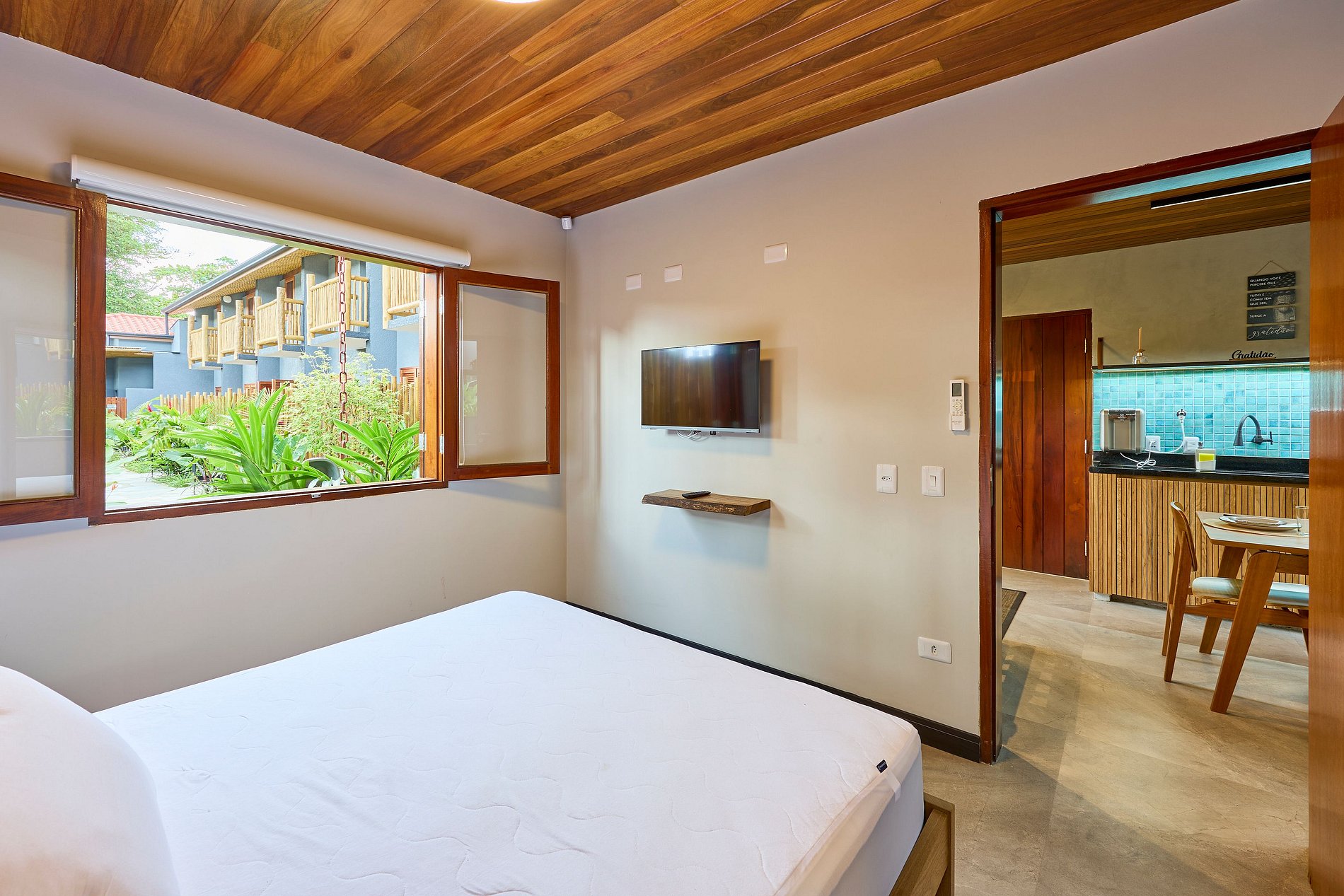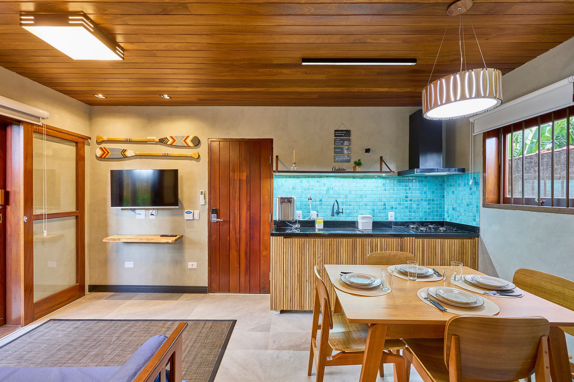 Cozinha toda equipada com cooktop, geladeira, air fryer, liquidificador, cafeteira, torradeira, sanduicheira, cafeteira, micro-ondas, purificador de água (opção gelada) e todos utensílios para preparar suas refeições.