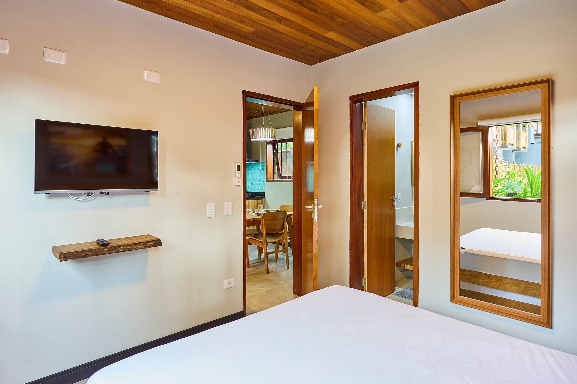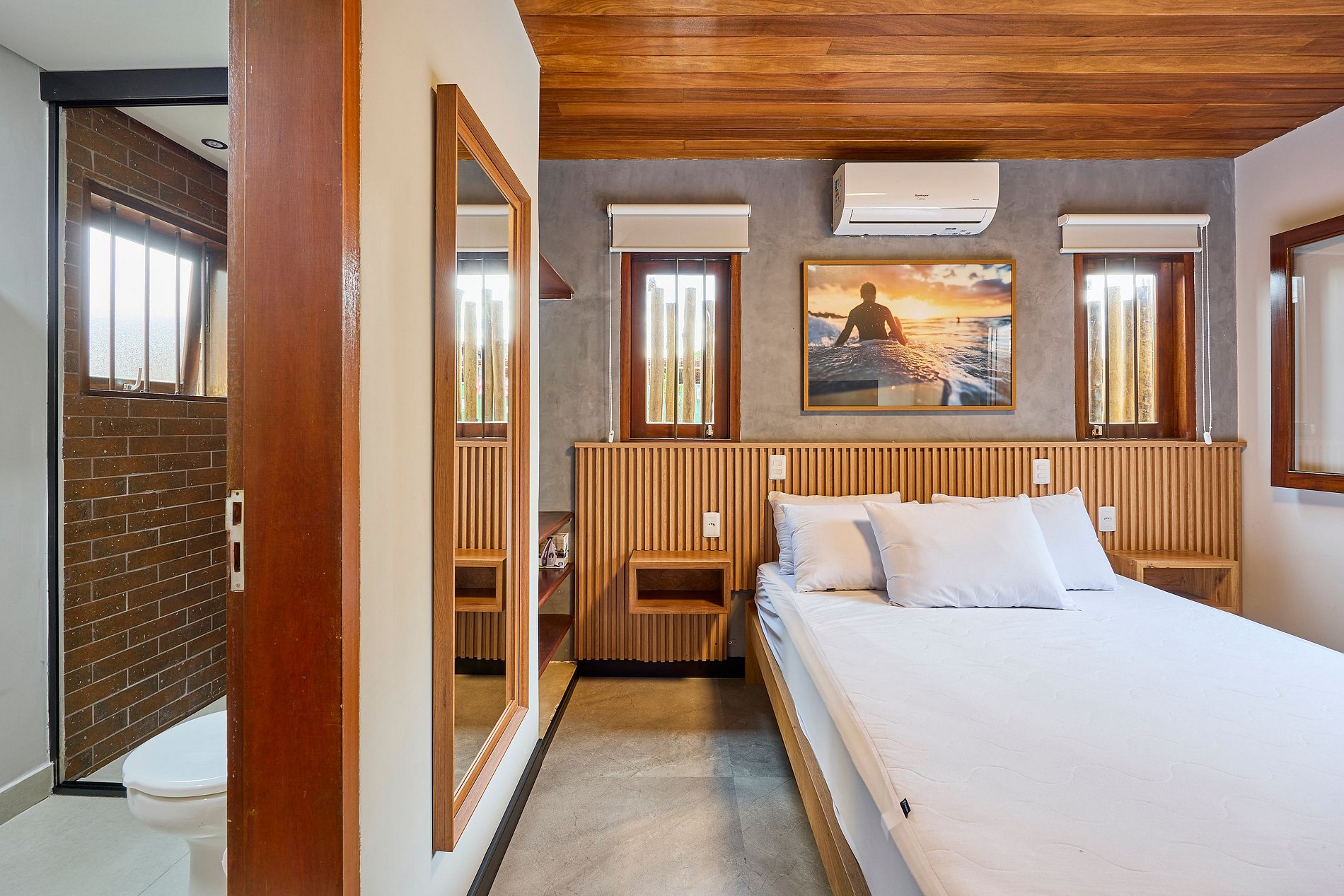 Suíte 1 : com ar e cama de queen + cama auxiliar de solteiro+ Tv smart. ( acomoda 3 pessoas)